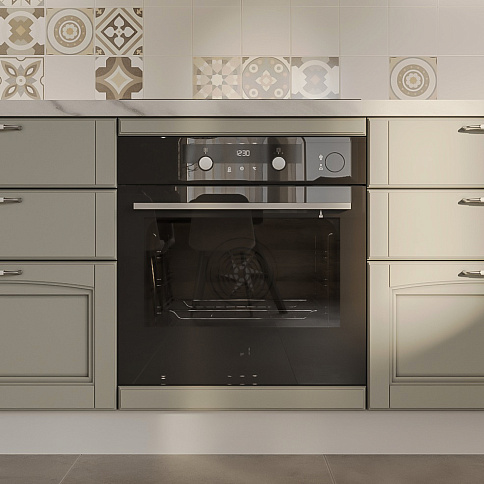 Кухня имеет угловую планировку, что позволяет эффективно использовать пространство и создать удобную рабочую зону.