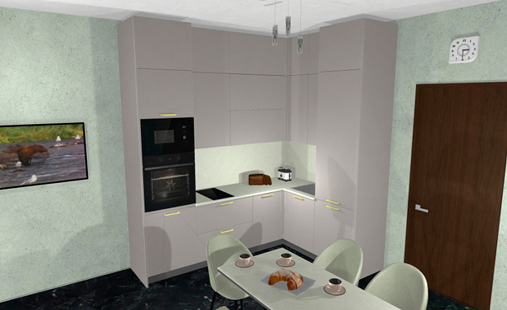 Задача: сделать уютную и комфортную угловую кухню в серых тонах, с зоной отдыха и обеденной группой, за 14 дней