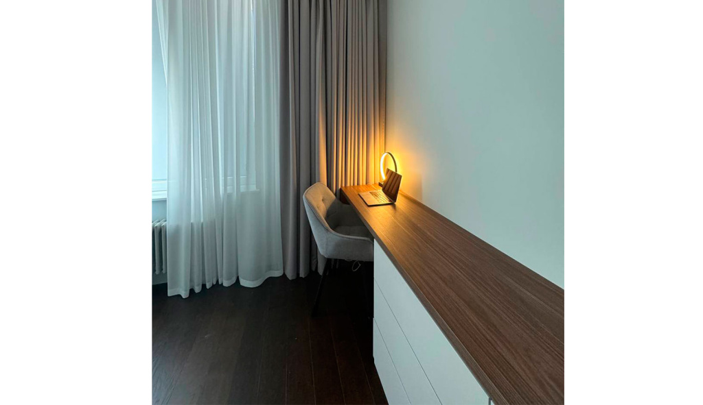 Потом мы обставили мою комнату. Туда я заказала шкаф, прикроватный столик, столик для макияжа, рабочую зону. Если бы я знала, что вы производите и кровати, заказала бы у вас и кровать. Но кровать я купила раньше, другого бренда. И нашей с дизайнером задачей было просто обставить комнату вокруг кровати, чтобы получился благородный и комфортный интерьер.