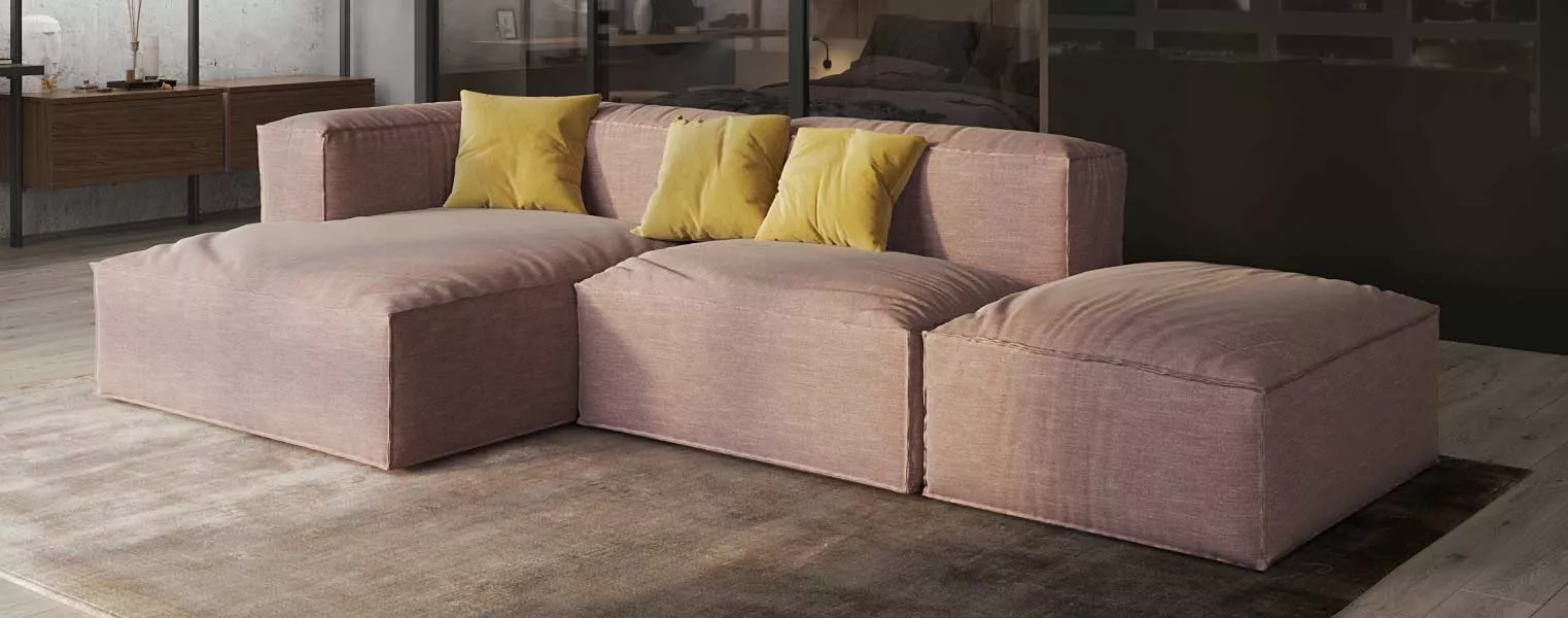 Модульный диван Уно - универсальный диван, создаваемый из модулей разной глубины, ширины и конфигурации. Данная конфигурация собрана из разных модулей - прямой, пуф, канапе. Модули можно комбинировать между собой, перестраивать любыми способами. Разные конфигурации элементов дивана создают множество вариантов исполнения под ваше настроение!