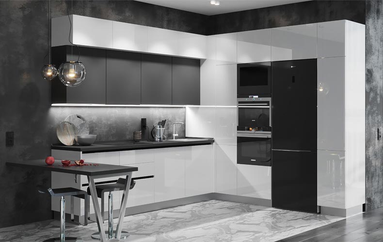 Фасады из МДФ c высокоглянцевым акриловым покрытием являются отличной альтернативой лакированным фасадам. Они имеют очень высокий глянец, благодаря которому вы можете получить зеркальный и глубокий эффект. Основными преимуществами фасадов МДФ c высокоглянцевым акриловым покрытием являются: высокая устойчивость к царапинам, механическим повреждениям и УФ-излучению.