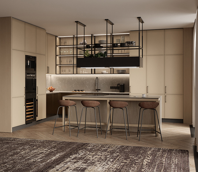Наша компания создает кухни, которые идеально вписываются в интерьер любой квартиры, дома, офиса. Кухонный гарнитур в г. Нахабино можно заказать по особому проекту, если из имеющихся моделей вам ничего не удалось подобрать. Мы предлагаем мебель на заказ в классическом, кантри, hi-tech и других стилях.