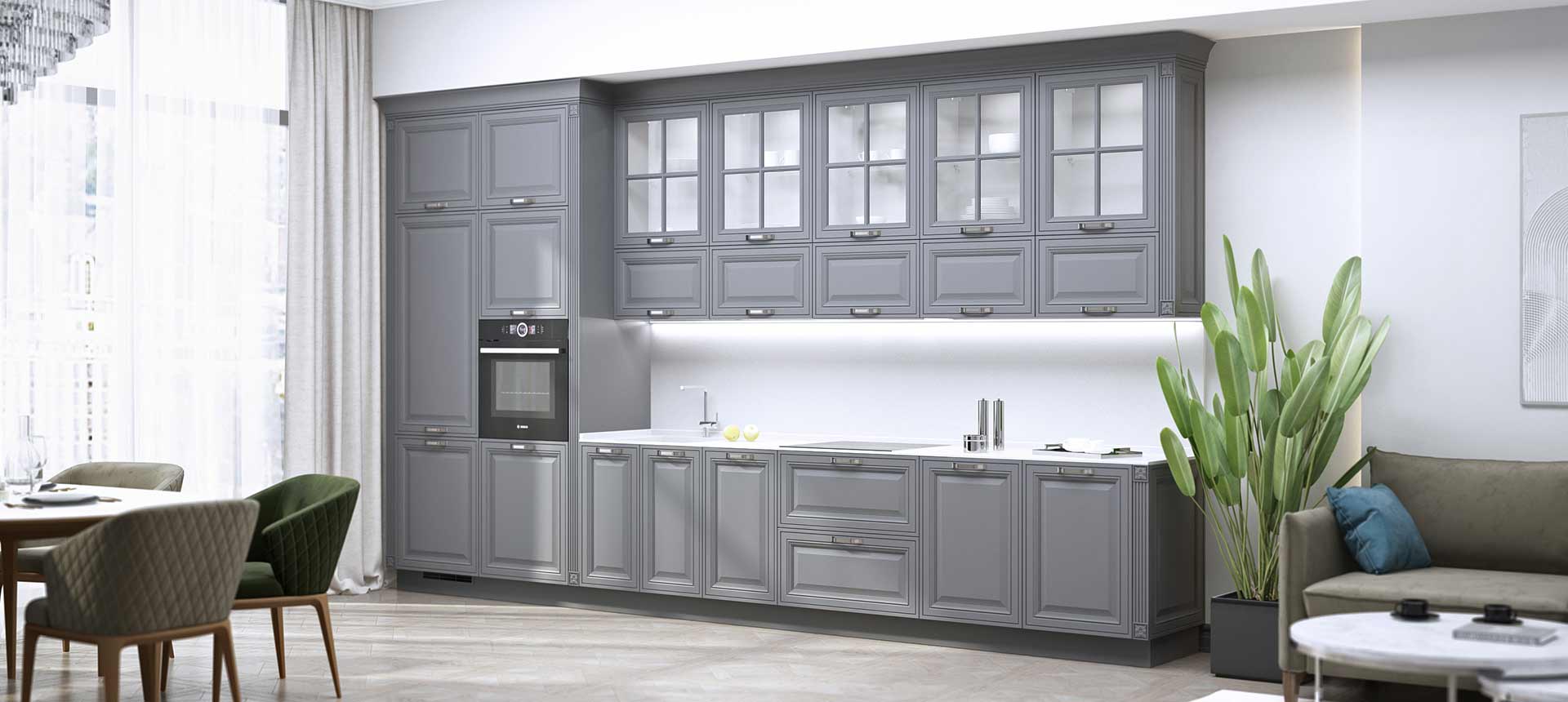 Наша компания создает кухни, которые идеально вписываются в интерьер любой квартиры, дома, офиса. Кухонный гарнитур в г. Подольск можно заказать по особому проекту, если из имеющихся моделей вам ничего не удалось подобрать. Мы предлагаем мебель на заказ в классическом, кантри, hi-tech и других стилях.