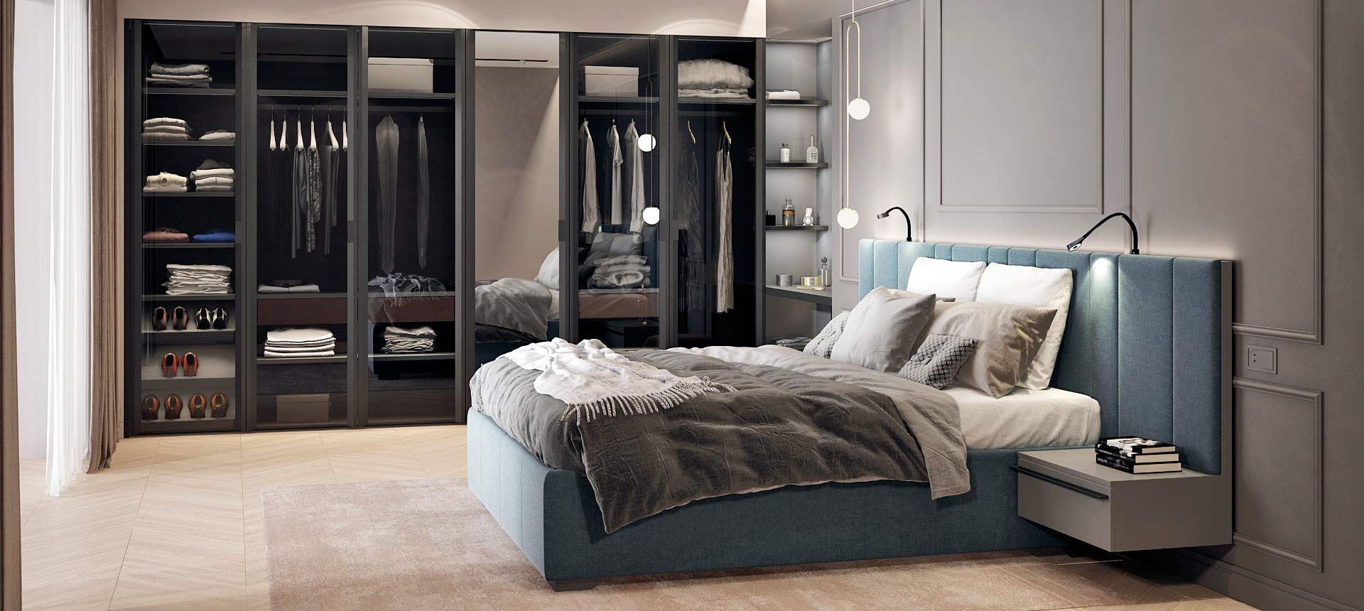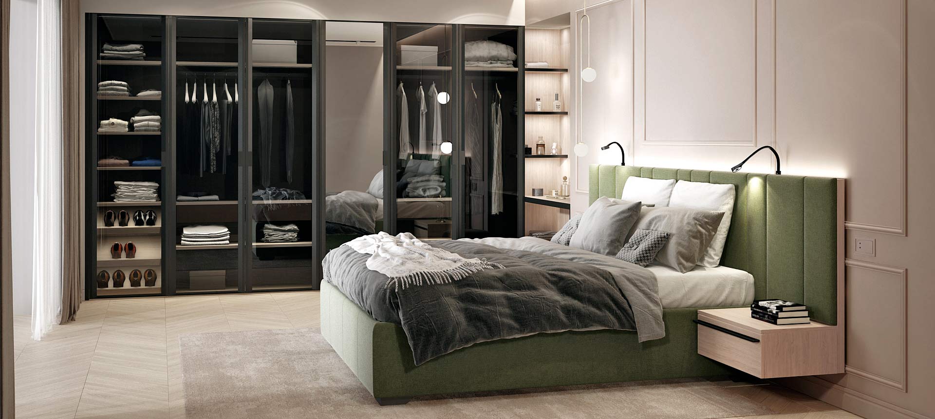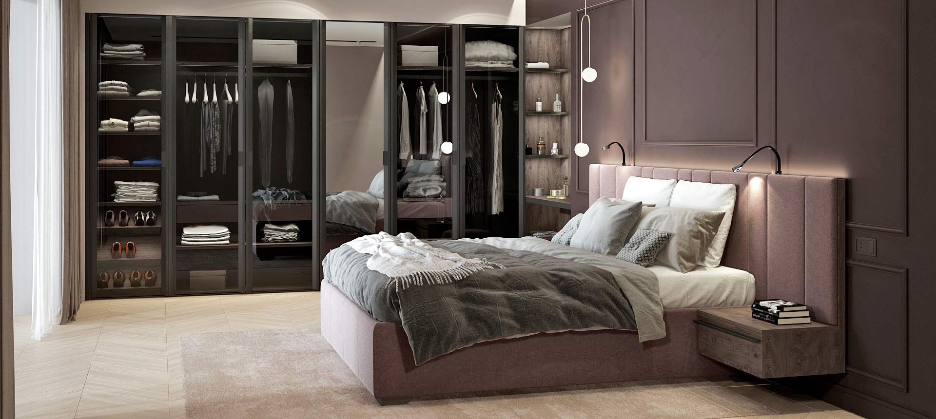 «Стильные Кухни и Интерьеры» сделали стеновые панели во всю стену в двух спальнях, и это было два разных решения. Стеновые панели в одной из спален обтянуты тканью, создавая эффект мягкости и утонченности» — читать полностью