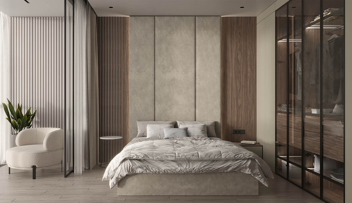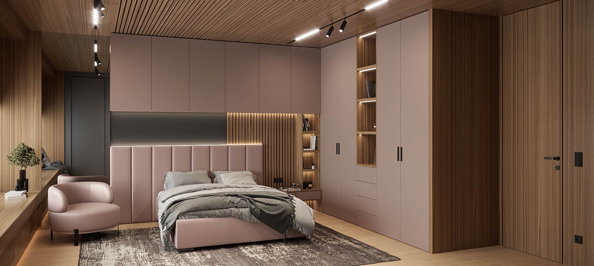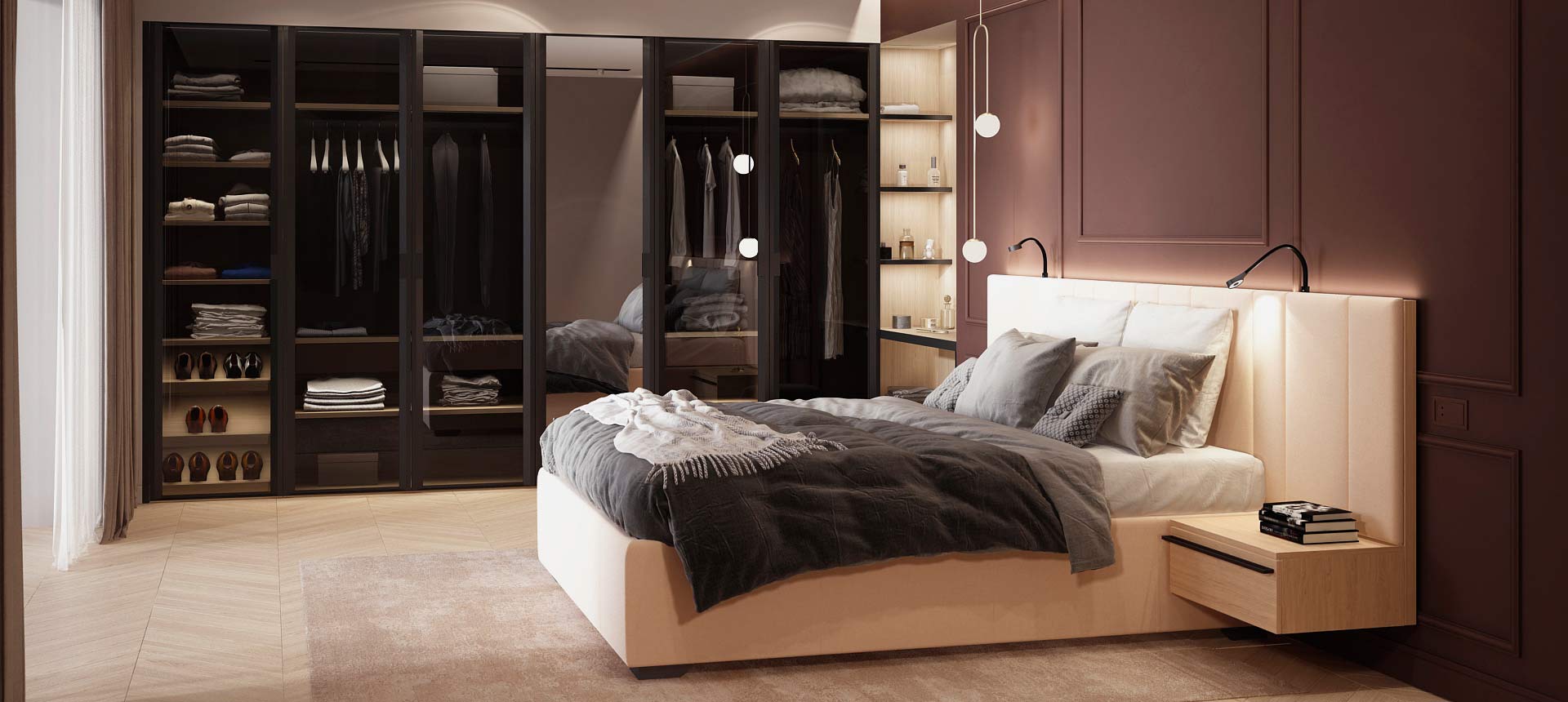 «Стильные Кухни и Интерьеры» сделали стеновые панели во всю стену в двух спальнях, и это было два разных решения. Стеновые панели в одной из спален обтянуты тканью, создавая эффект мягкости и утонченности» — читать полностью