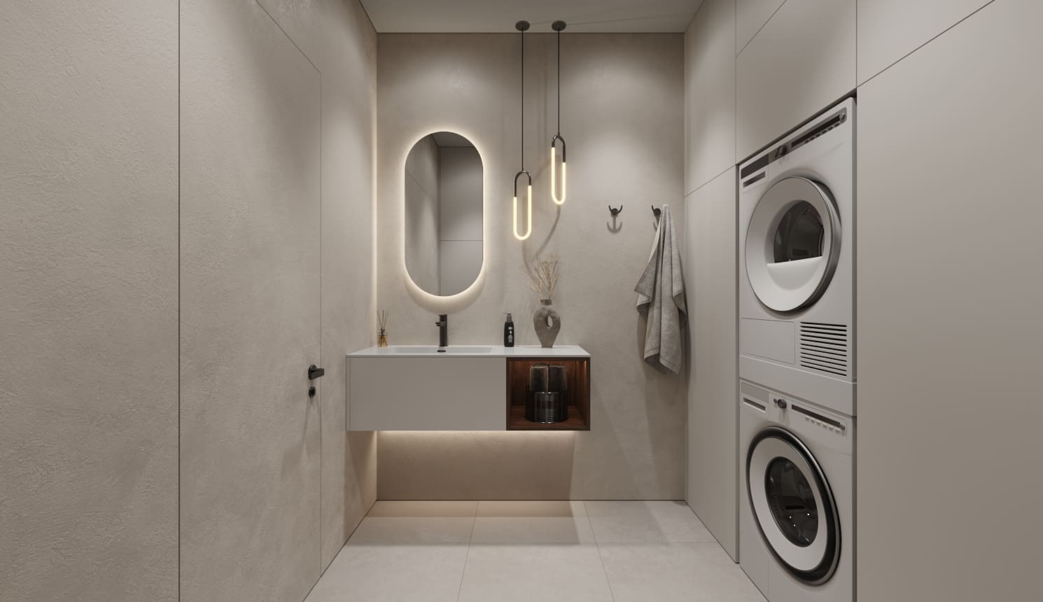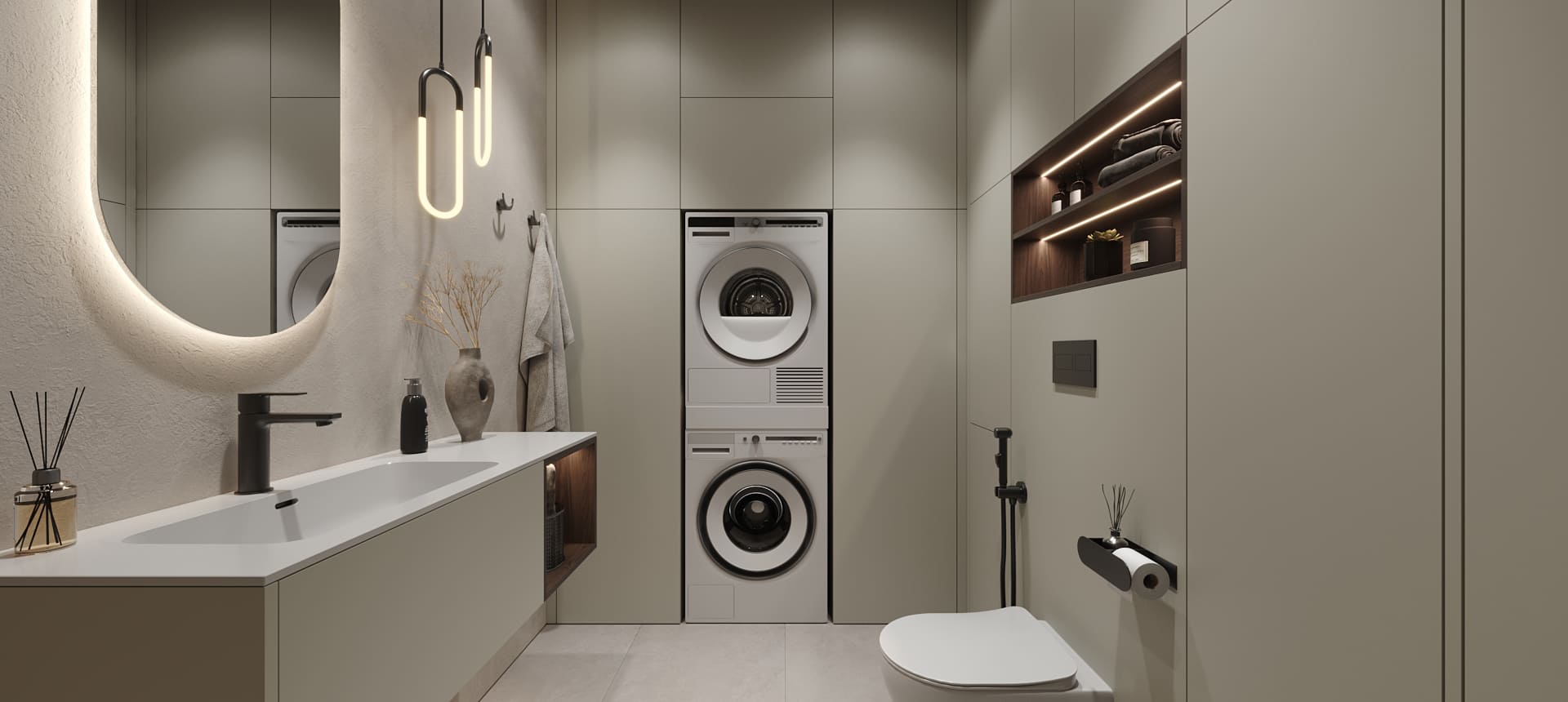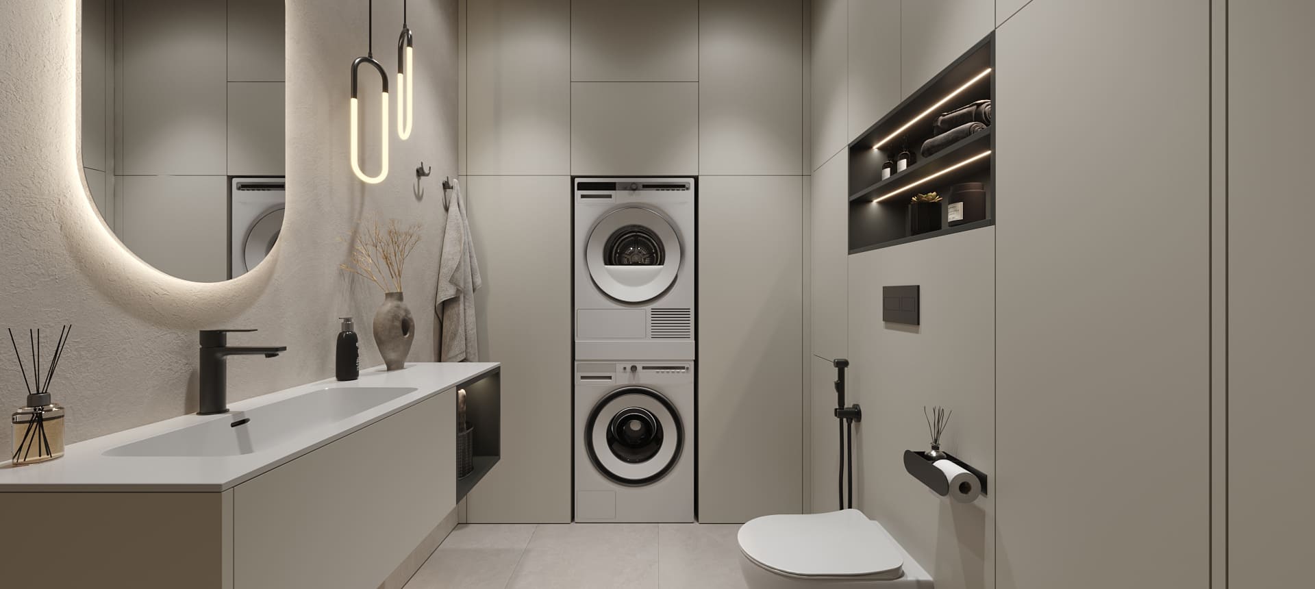 «У меня все проекты с компанией («Стильные Кухни и Интерьеры) были хорошие, но мебелью в ванную комнату я довольна больше всего на свете. Мне сделали тумбу под раковину, две навесные колонки по бокам, зеркало с подсветкой, а также встроенный шкаф напротив. Из-за высоты потолков и размеров шкафов было непросто спроектировать все так, как надо: были опасения, что дверцы ослабнут, что тяжелые дверцы нельзя будет открывать одним легким нажатием. Но в итоге в фасады добавили направляющие, которые их усиливают. И еще удалось сделать эти высокие двери с механизмом push-to-open. У меня не очень большая площадь ванной, поэтому хотелось обойтись без лишних деталей, в том числе и выступающих ручек, которые я бы постоянно задевала»,