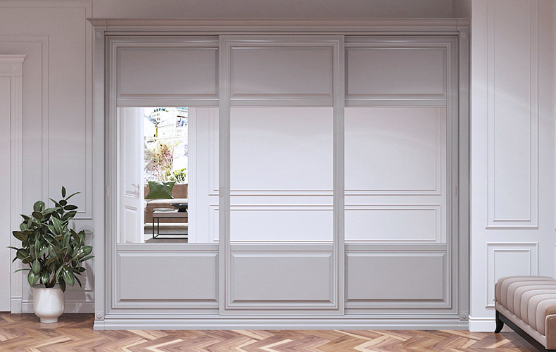Трёхдверный шкаф-купе в прихожую в классическом стиле